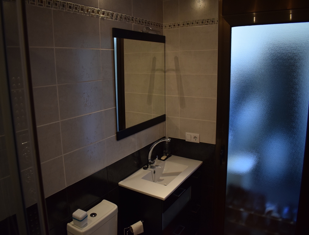 Als u voor de kastenhal door de deur naar rechts gaat, komt u in een compleet betegelde badkamer met glaswand waarachter zich een royale doucheruimte bevindt. Een hydro-massage douche tilt deze badkamer naar een hoger niveau en maakt het een ruimte om heerlijk te ontspannen en te genieten. Verder staat er in de badkamer een toilet en wastafel opgesteld. Er is ventilatie aangebracht. Vanuit deze badkamer heeft u ook toegang tot de wasruimte/bijkeuken. Deze badkamer heeft overigens een vloeroppervlakte van 5.72m2.